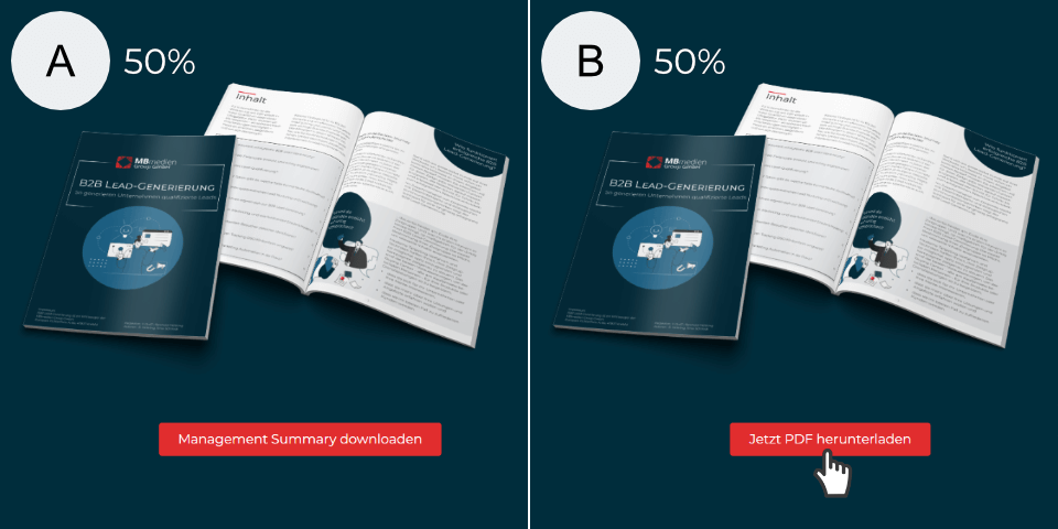 FĂŒhren Sie A/B-Tests durch: Erstellen Sie zwei Varianten einer Webseite, die sich in einem einzigen Punkt unterscheiden – beispielsweise der Headline oder der Farbe des CTA-Buttons – und spielen Sie diese den Besuchern 50:50 aus. So finden Sie heraus, welche Variante besser funktioniert.