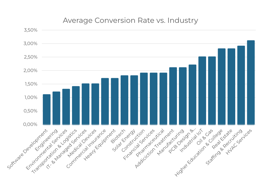 Die durchschnittliche Conversion Rate ist je nach Branche, Kontaktphase, Kanal, Format und Conversion-Ziel unterschiedlich hoch.