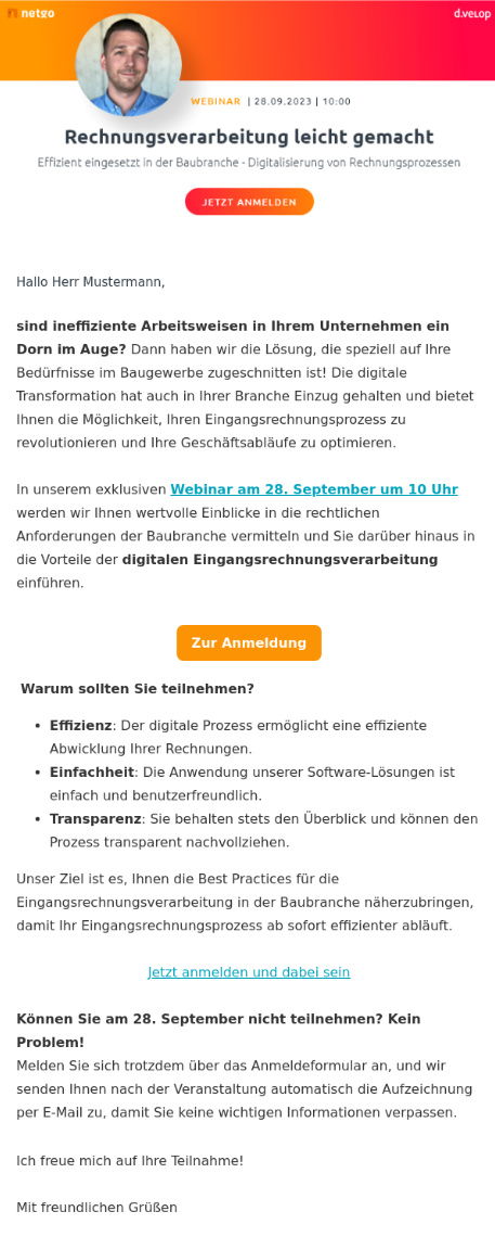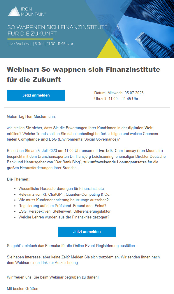 Produkt-Präsentation, Whitepaper-Download, Einladungen zu Webinaren oder Live-Events: