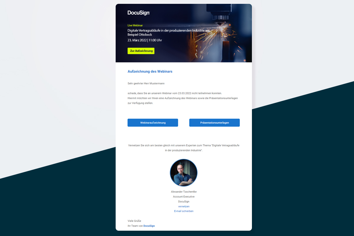 Nach Ihrem Webcast versenden wir ein Thank you / Miss you Mailing mit dem Hinweis auf die Aufzeichnung (VoD).